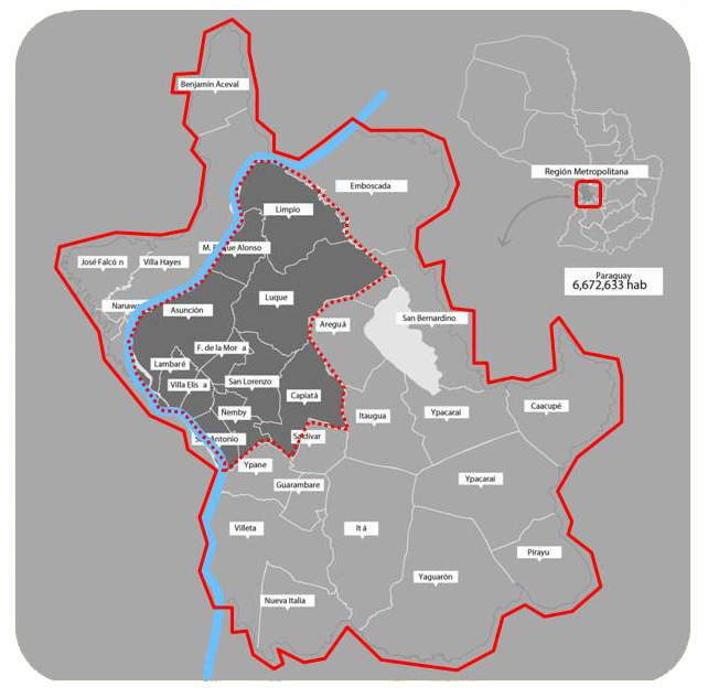 Tomando como principales zonas de intervención a la Franja Costera en su totalidad, el Centro Histórico, los nuevos corredores de transporte público y la Región Metropolitana de Asunción, todo ello a fin de producir un Modelo de Gestión ejecutivo que oriente y facilite el desarrollo, la inversión y la integración de cada uno los proyectos propuestos por los diversos sectores sociales participantes en la definición del Plan del Gran Asunción.