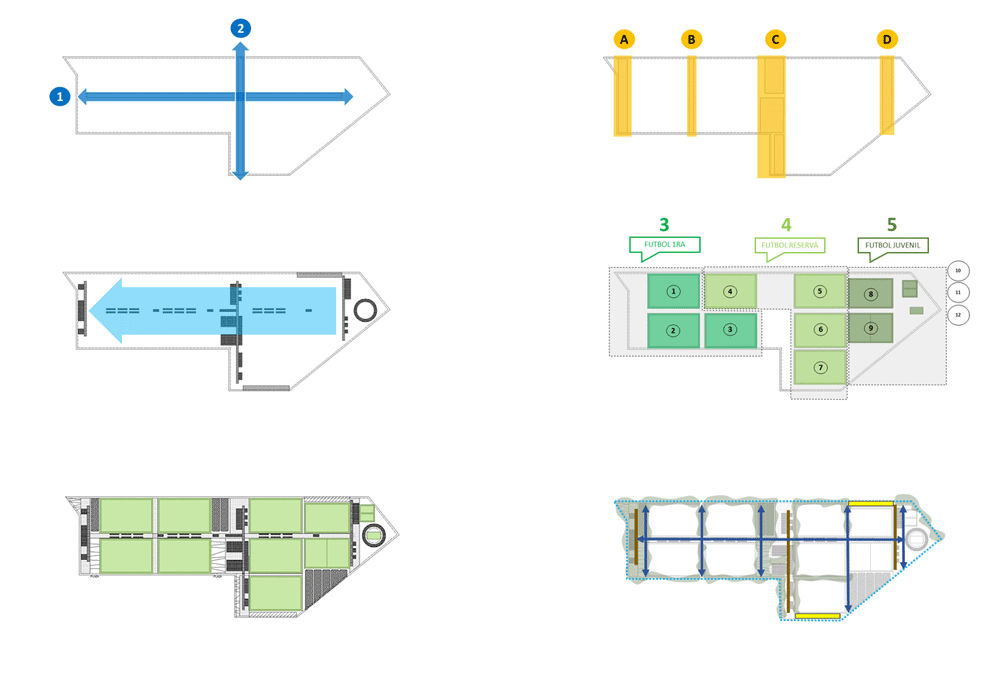 Plan maestro de un centro de alto rendimiento social y deportivo para Racing Club en un predio de 12 ha. en la ciudad de Avellaneda. El proyecto genera un espacio de versatilidad deportiva, nuevos usos sociales y circuitos de vinculación con el estadio existente.