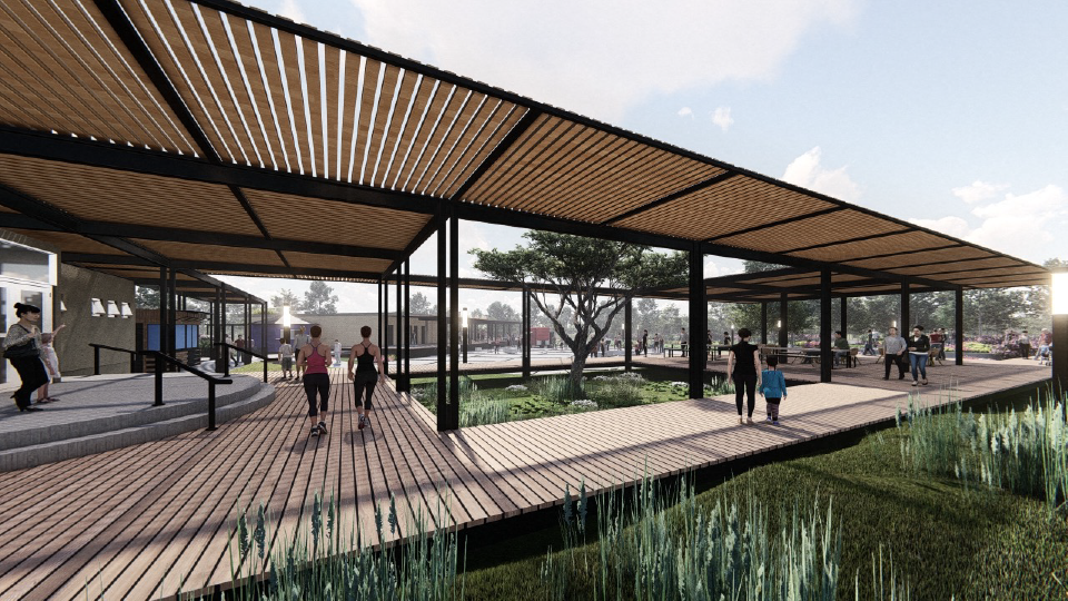 El proyecto de la Plaza Social e Institucional en el Club de Campo de Hacoaj ha de generar un nuevo espacio de encuentro para los residentes del barrio, que posibilitará vincular un sitio de gran referencia por sus actividades deportivas con un parque de diseño de atractivas características botánicas, que permitirá sumar recorridos recreativos, sitios de encuentros gastronómicos, un área escénica para eventos y una zona de juegos infantiles.