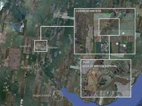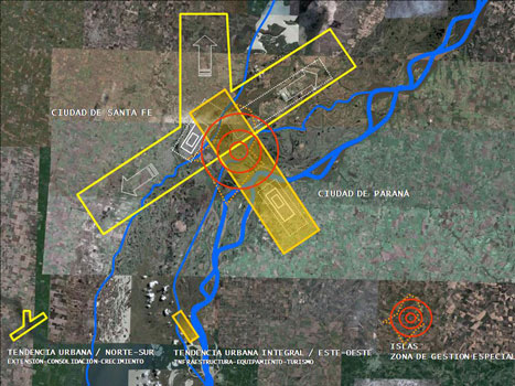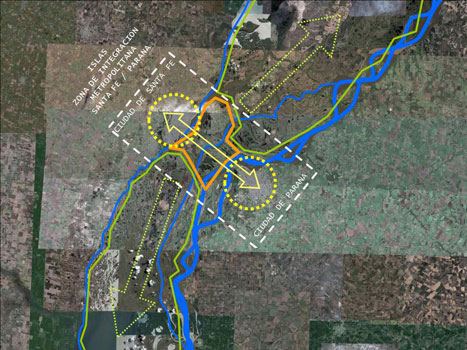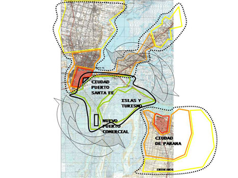Proyecto urbano y ambiental de un amplio territorio frente a la zona portuaria de la ciudad de Santa Fe, posibilitando una operación favorable para el desarrollo turístico de una extensa zona de gran calidad paisajística.