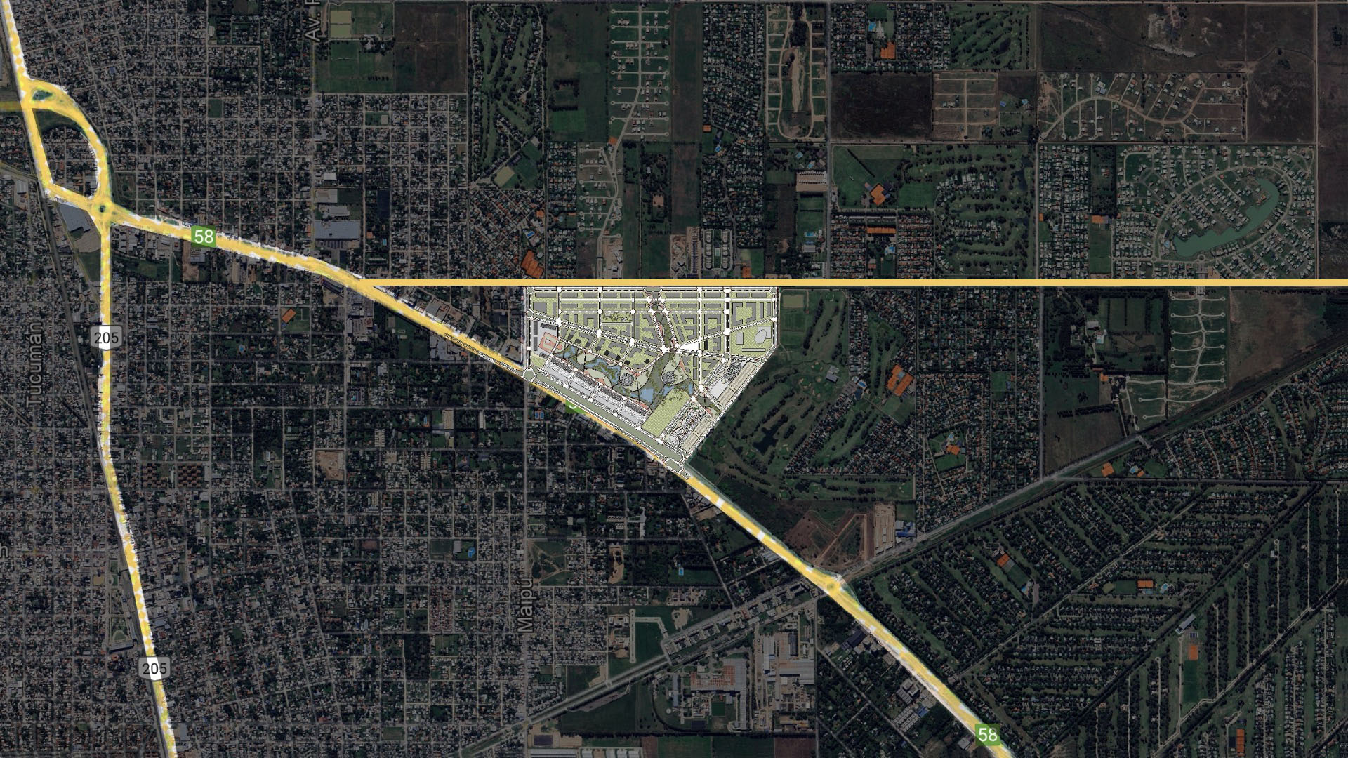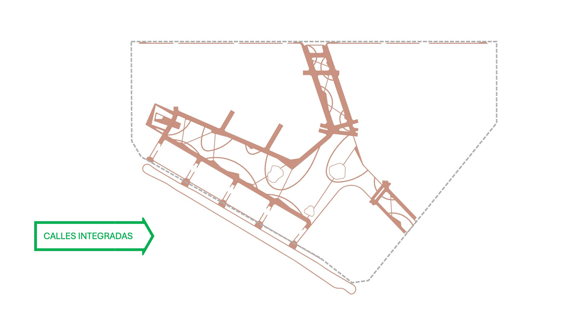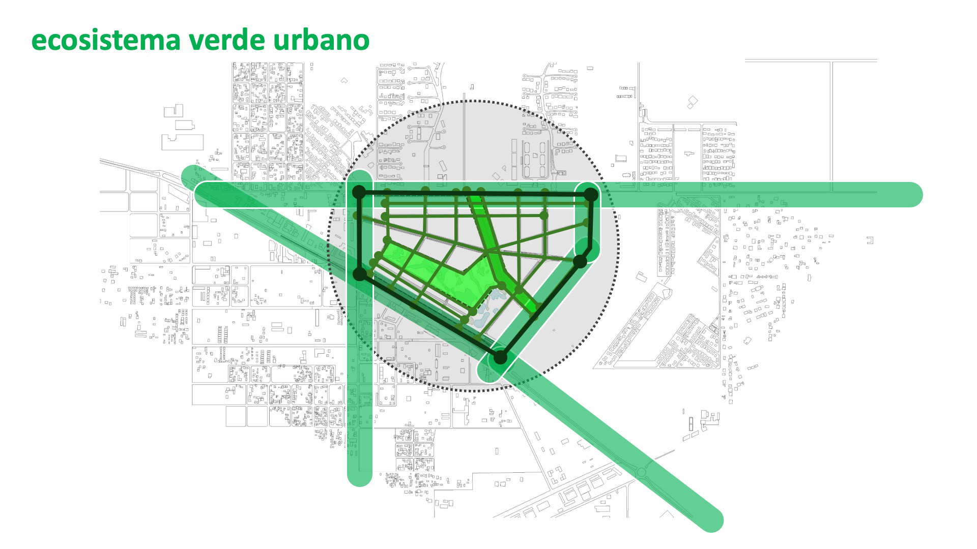 La visión diferencial de la propuesta en desarrollo en la localidad de Canning, una zona creada en base a la continua construcción de barrios privados cerrados, se fundamenta en un aporte original, el proyecto de un barrio abierto de más de 30 Ha atento al futuro de la ciudad, con diversas tipologías residenciales y usos mixtos dedicados a comercios y equipamientos con un parque urbano central de 11 Ha. Así, la propuesta de OFICINA URBANA de intercalar en el tejido condominios multifamiliares ajardinados localizados junto a comercios y múltiples servicios comunitarios, en el contexto de un gran parque público abierto a la socialización, genera mucha más semejanza a los barrios metropolitanos que a los barrios o centros comerciales aislados de los suburbios urbanizados. El proyecto producido en Canning promueve la idea de consolidar el tejido de la ciudad como arena de intercambio, mixtura, convivialidad y diversidad, alentando la confluencia de dos corrientes de intensidades distintas: una centralidad residencial suburbana y un parque con equipamiento comercial e institucional de escala metropolitana.