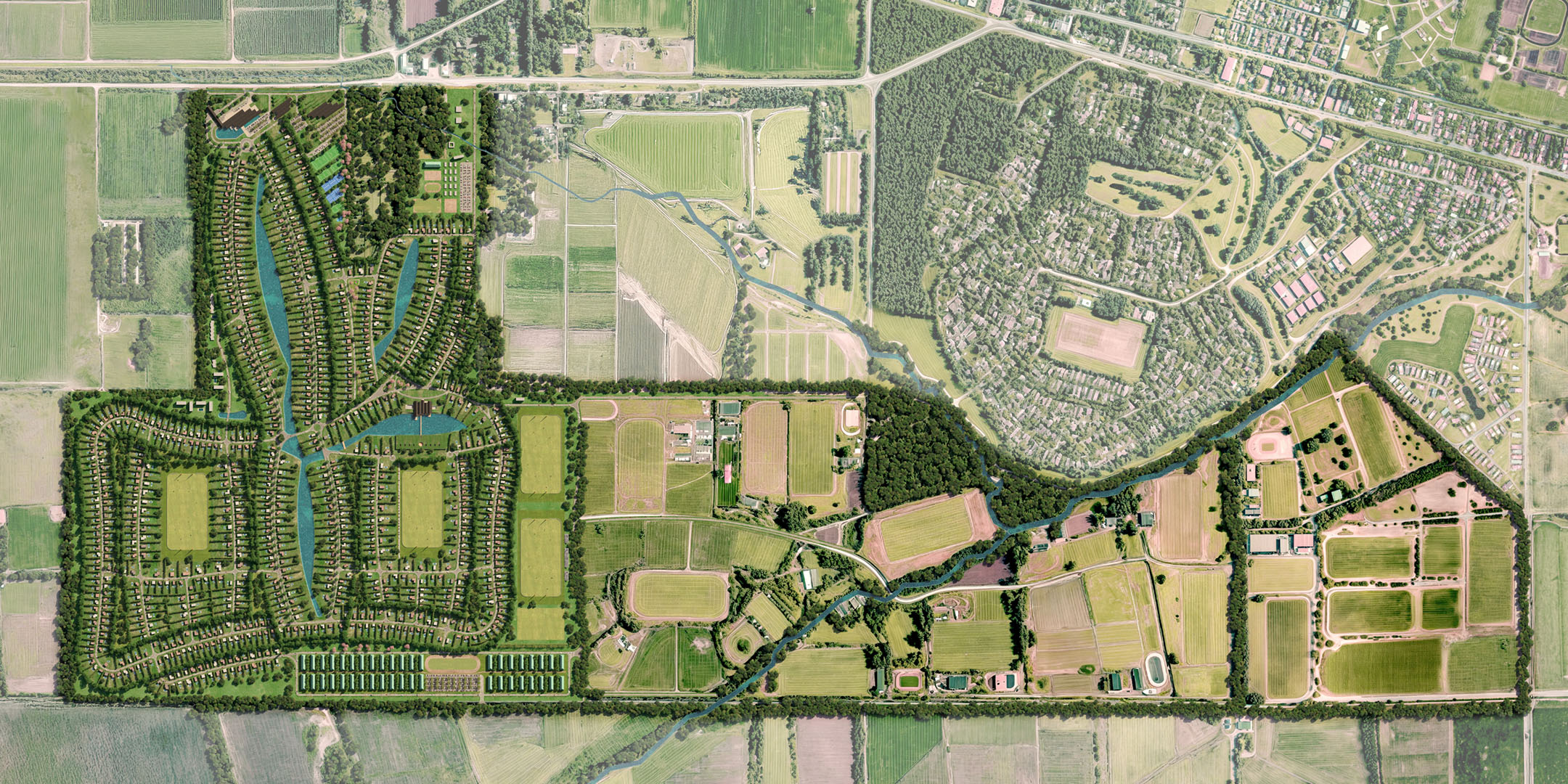 En este sentido, el proyecto de La Dolfina. Polo Ranch, se adapta a esas condiciones y propone un objetivo diferencial al modelo de los emprendimientos residenciales habituales, ordenando los distintos elementos que lo componen en función del concepto de un espacio rural definido por las actividades que relacionarán a los habitantes del campo con las disciplinas ecuestres.