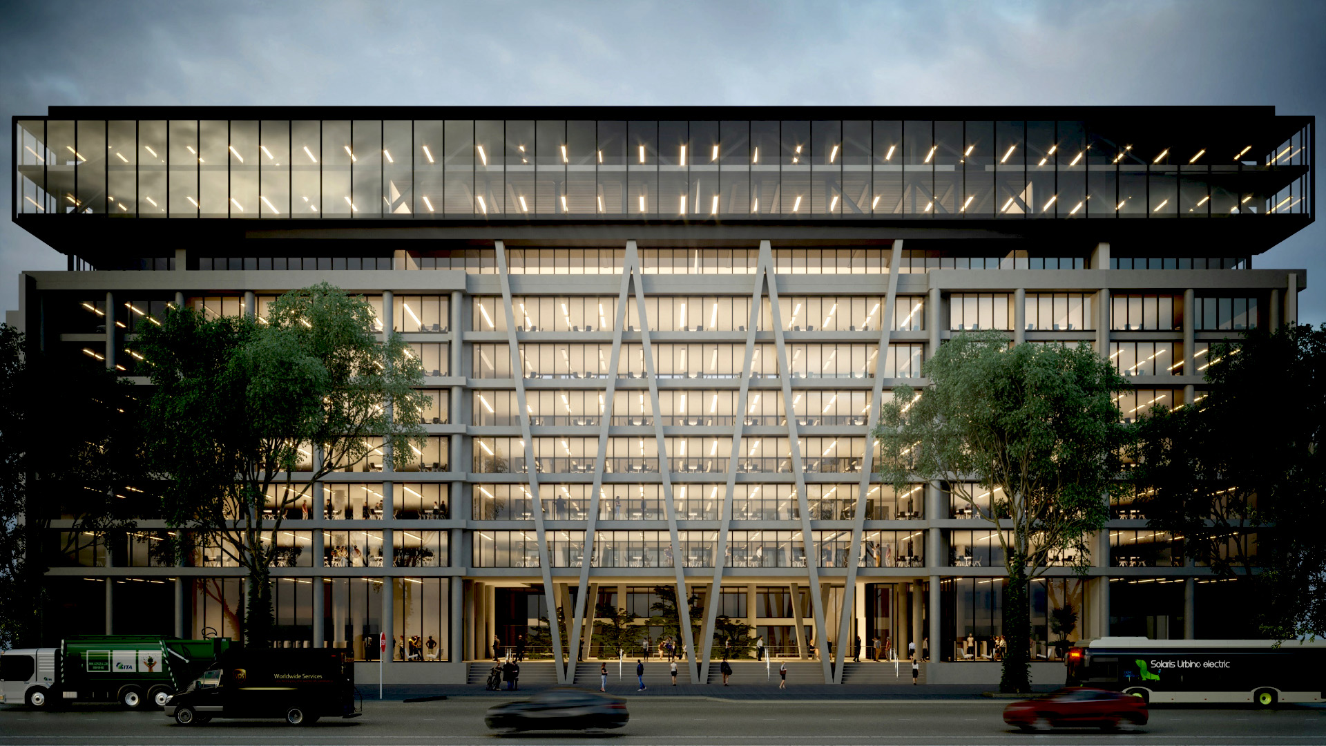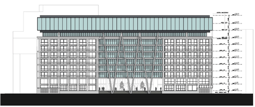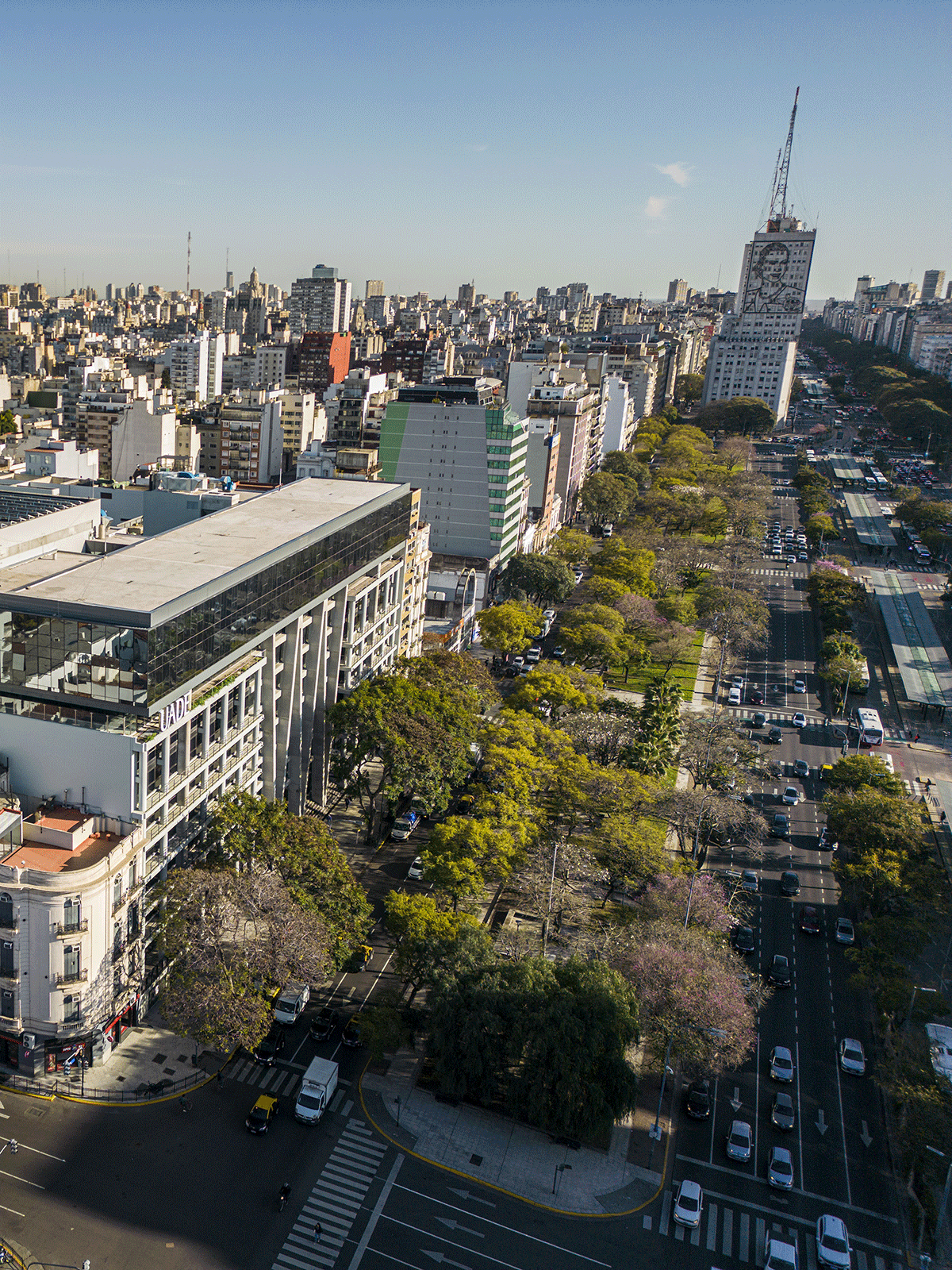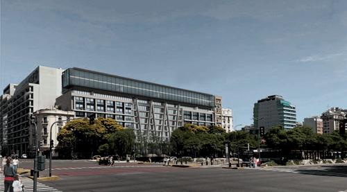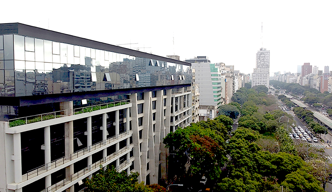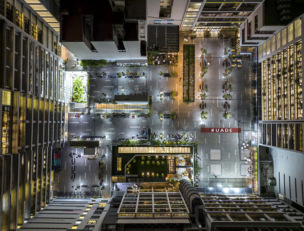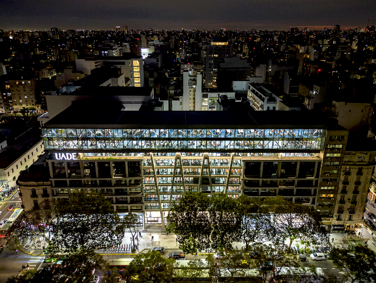 Proyecto de ampliación de la sede central de la Ciudad de Buenos Aires de la UNIVERSIDAD ARGENTINA DE LA EMPRESA | UADE, generando nuevas aulas, auditorios, espacios de arte y laboratorios y espacios de cocreación académica y una figura icónica del conjunto edilicio definida LA NAVE UADE en el contexto de su figuración y presencia sobre la Avenida 9 de Julio. En pleno desarrollo de construcción.
