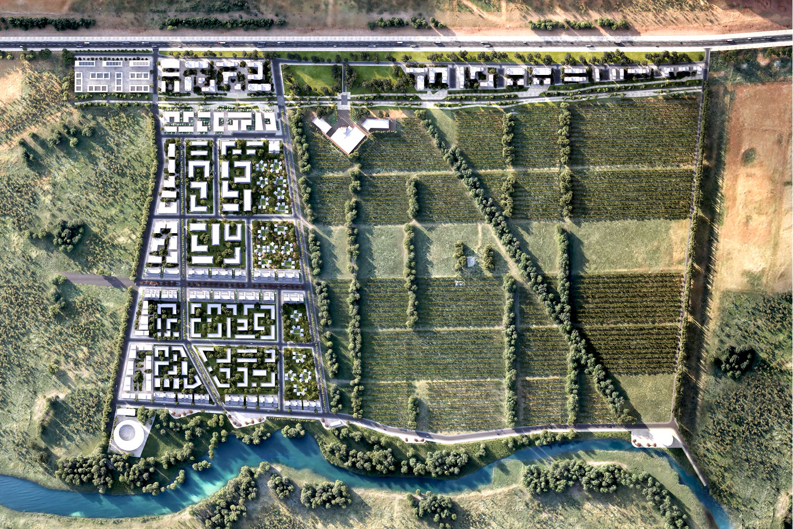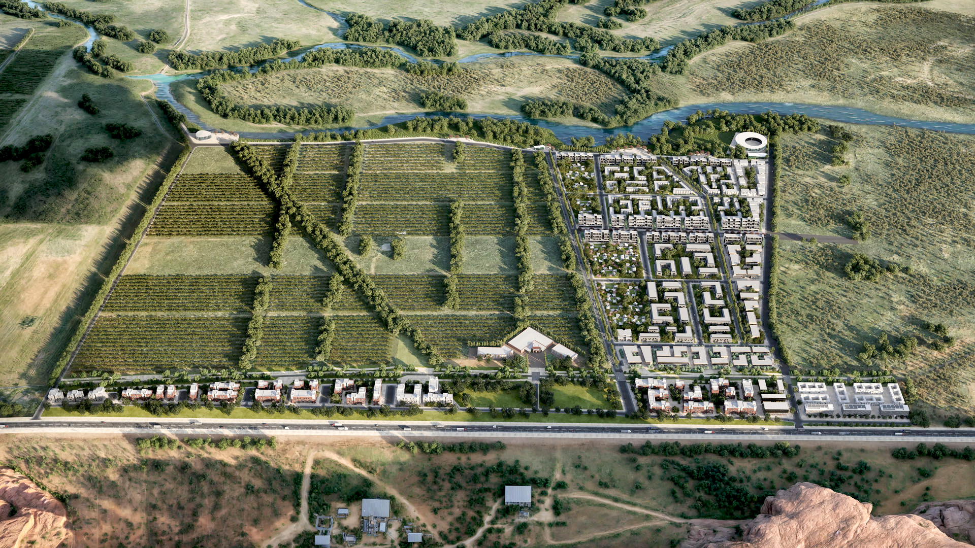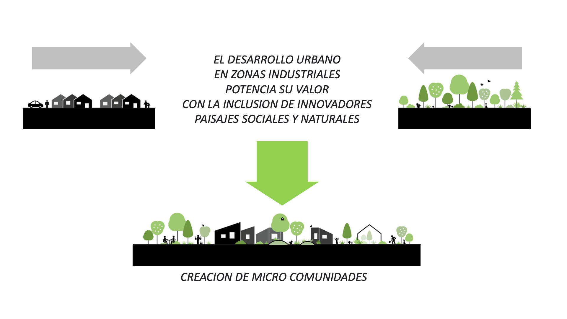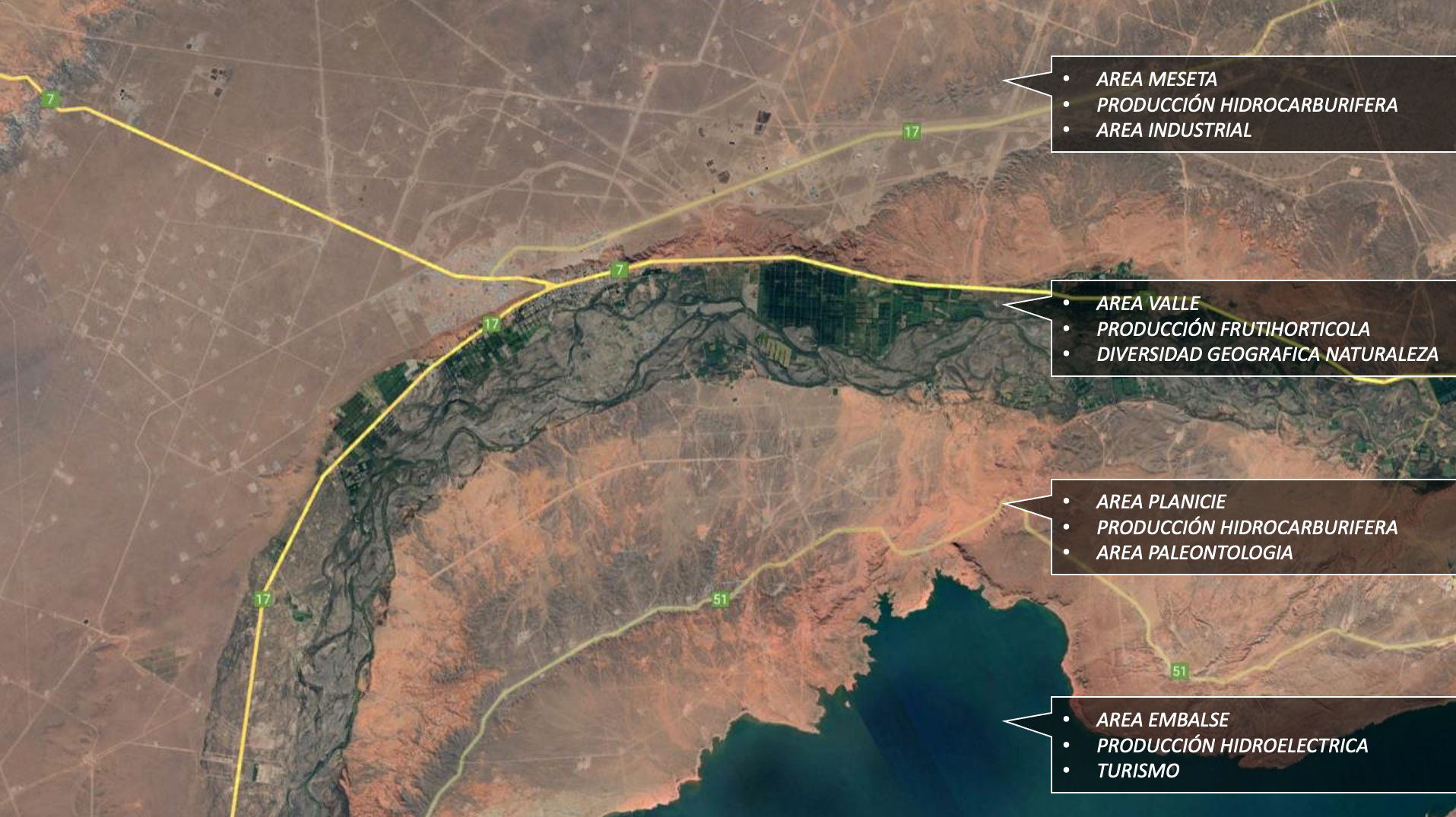 Propuesta de un proyecto urbano para la creación de un nuevo modelo de habitar en comunidad. En el Departamento de Añelo, Provincia de Neuquén. Un territorio de gran crecimiento poblacional, a partir de la presencia del gran desarrollo de la plataforma Vaca Muerta, generadora de una gran producción de gas y petróleo no convencional, lo cual ha creado la necesidad de residencias, espacios públicos, zonas comerciales y de oficinas. La idea aquí planteada de micro comunidades rururbanas, alienta la generación de un sistema integrado de viviendas y áreas comunitarias en el marco de un contexto de singular y atractivo carácter.
