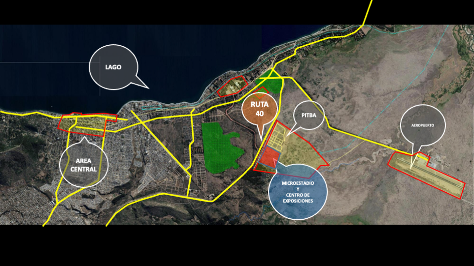 Ante este acontecimiento, se ha configurado la oportunidad de dar inicio, de modo planificado, a la ampliación y extensión del tejido urbano hacia el lado Este de la ciudad, consolidando simultáneamente áreas en cercanías del PITBA y en el radio del las sedes del INVAP y la Universidad de Río Negro, siendo en el contexto de ese territorio donde el Gobierno Provincial a propuesto incorporar la localización de un proyecto para actividades de gran escala dedicado a eventos y exposiciones de nivel internacional y un microestadio para espectáculos artísticos y deportivos, ambos vinculados entre si e inscriptos en un gran parque recreativo.