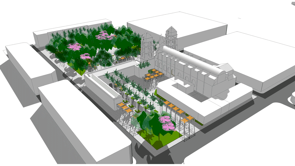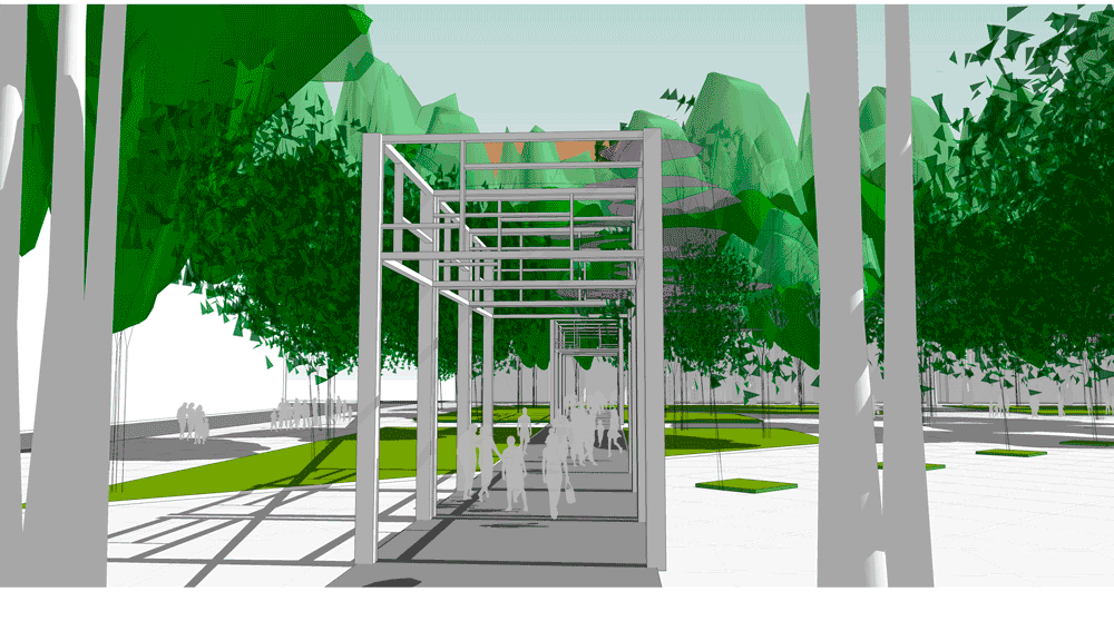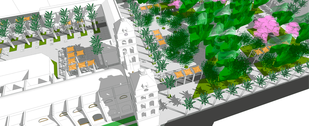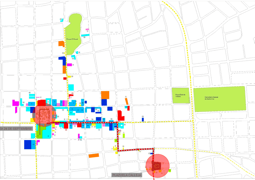 El anteproyecto de transformación del espacio público urbano y del paisaje de dos emplazamientos en la ciudad de Santa Cruz de la Sierra, trata en primer término la readecuación de estos parques o plazas, para posteriormente generar la vinculación de ellos, con un entorno de gran cualidad patrimonial y con la red de parques de cercanía, promoviendo un sistema innovador en los recorridos recreativos ciudadanos y el diseño de un equipamiento especial para la celebración de ferias artesanales y de venta de alimentos.