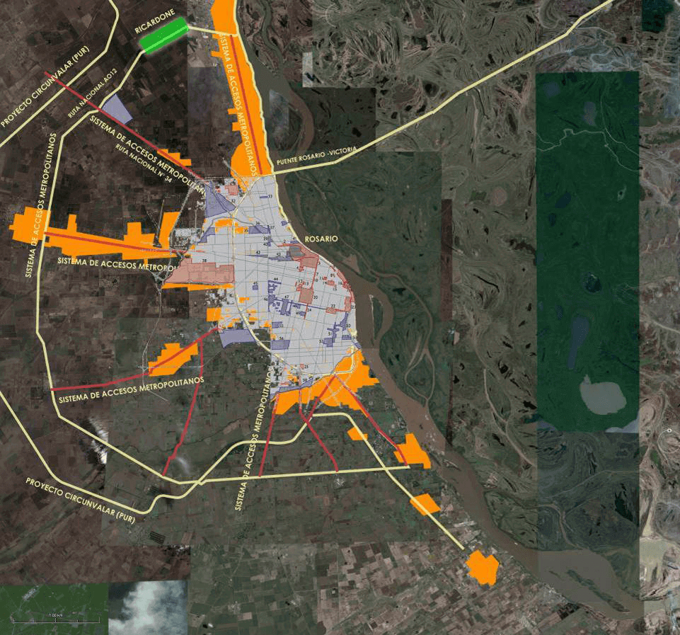 El proceso de crecimiento de la ciudad de Rosario y de los municipios de su Área Metropolitana, el escenario de impulso de las mejoras regionales por parte de la Hidrovía Paraguay Paraná y el contexto de una diferente perspectiva social y económica del MERCOSUR, alienta la ideación de un Polo Especializado para la Gestión Agroalimentaria, en la intersección de las Rutas 12 y 34, generando la transformación de 2.000 ha, e incorporando al uso industrial agroproductivo, el desarrollo de empresas, residencias, comercios y actividades educativas, institucionales, culturales y recreativas.