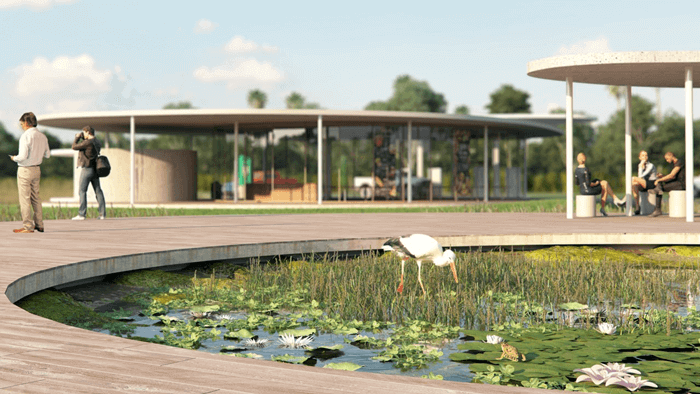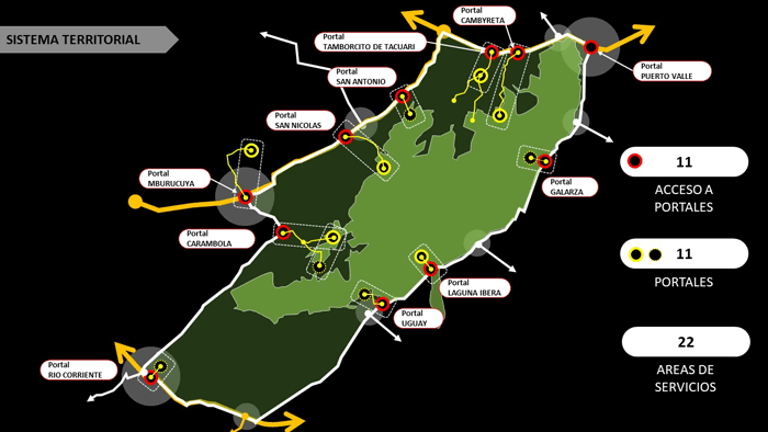 El diseño, en ese sentido se nutre de las características que la misma naturaleza sugiere, a través de una diversa colección de sitios multiformes de agua y verde que se constituyen en cada sitio. Aportando así un valor funcional y simbólico, entrelazando la arquitectura y el paisaje de los accesos con los Portales del IBERÁ.