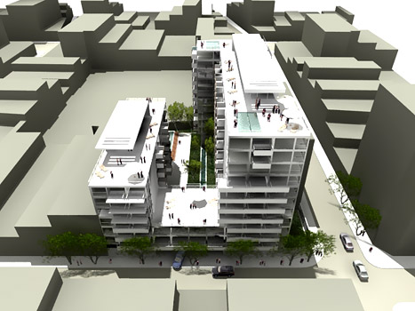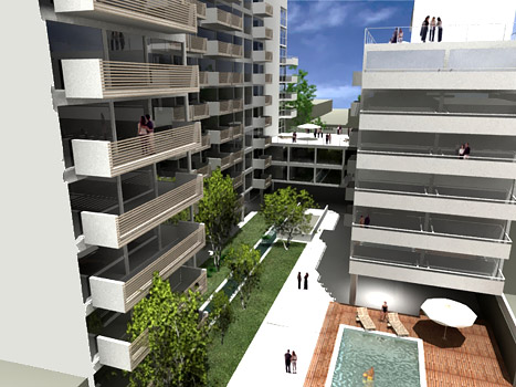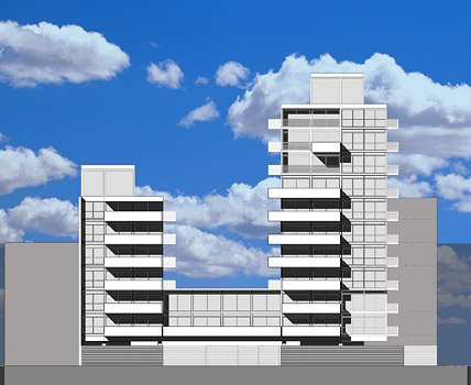 Proyecto de arquitectura para un edificio de residencia en el centro de la Ciudad de Buenos Aires, con unidades de vivienda, estudios profesionales, amenities y servicios especiales y complementarios.
