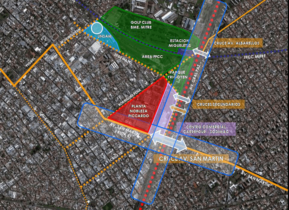 El proyecto genera la refuncionalización de un área industrial sin actividad, promoviendo el desarrollo de un nuevo centro para el Municipio de San Martín, en base a un programa de usos comerciales, residenciales, culturales, educativos, oficinas y hotelería, produciendo un proceso de transformación urbana de escala local y metropolitana, sobre un territorio de 15 hectáreas de superficie, con gran influencia para el encuentro público. En gestión para su desarrollo.