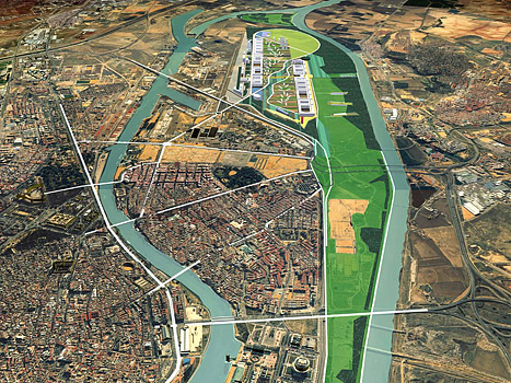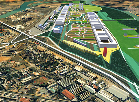Proyecto urbano para la reconversión del área del antiguo Aeropuerto Militar de Tablada en Sevilla, España, con una superficie de transformación de 700 has promoviendo la mejor integración con la zona portuaria y el Río Guadalquivir, incorporando una nueva zona terciaria, residencial, recreativa y de equipamiento general a la Ciudad, generando un nuevo frente costero urbano y promoviendo una transformación e integración de gran escala sobre los barrios de Triana y Remedios, Cartuja y la zona de la Expo 92.