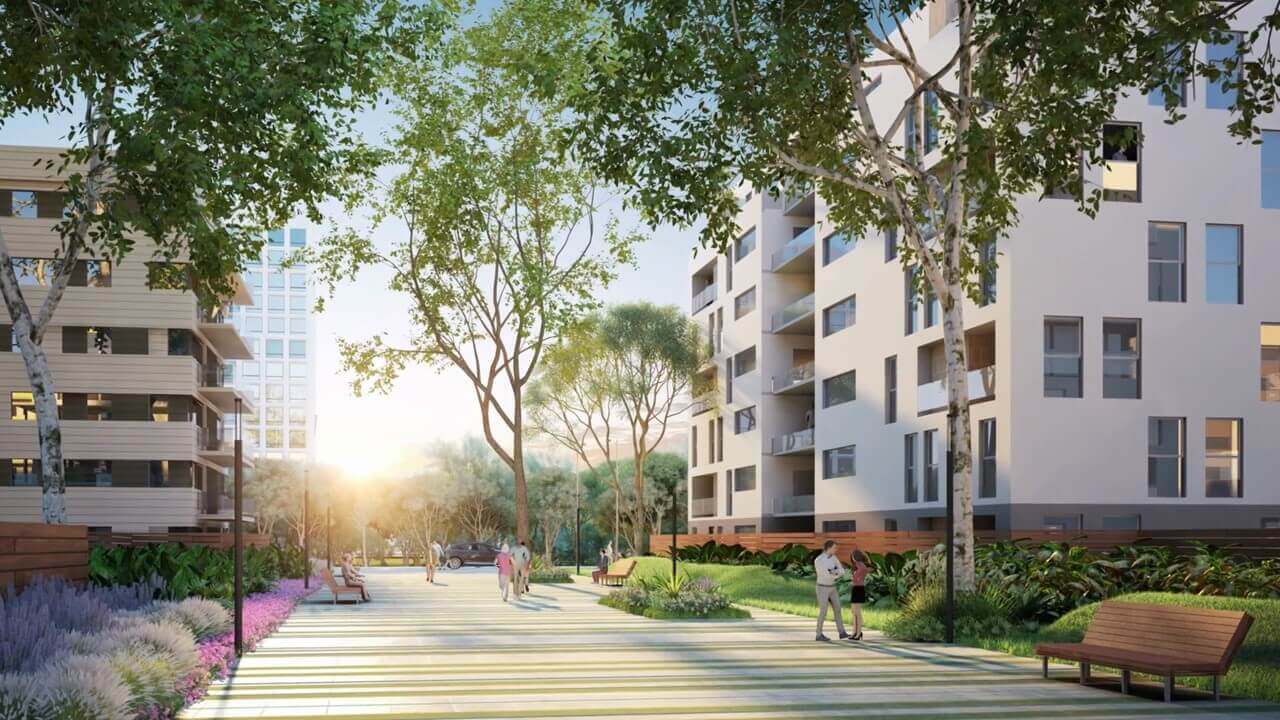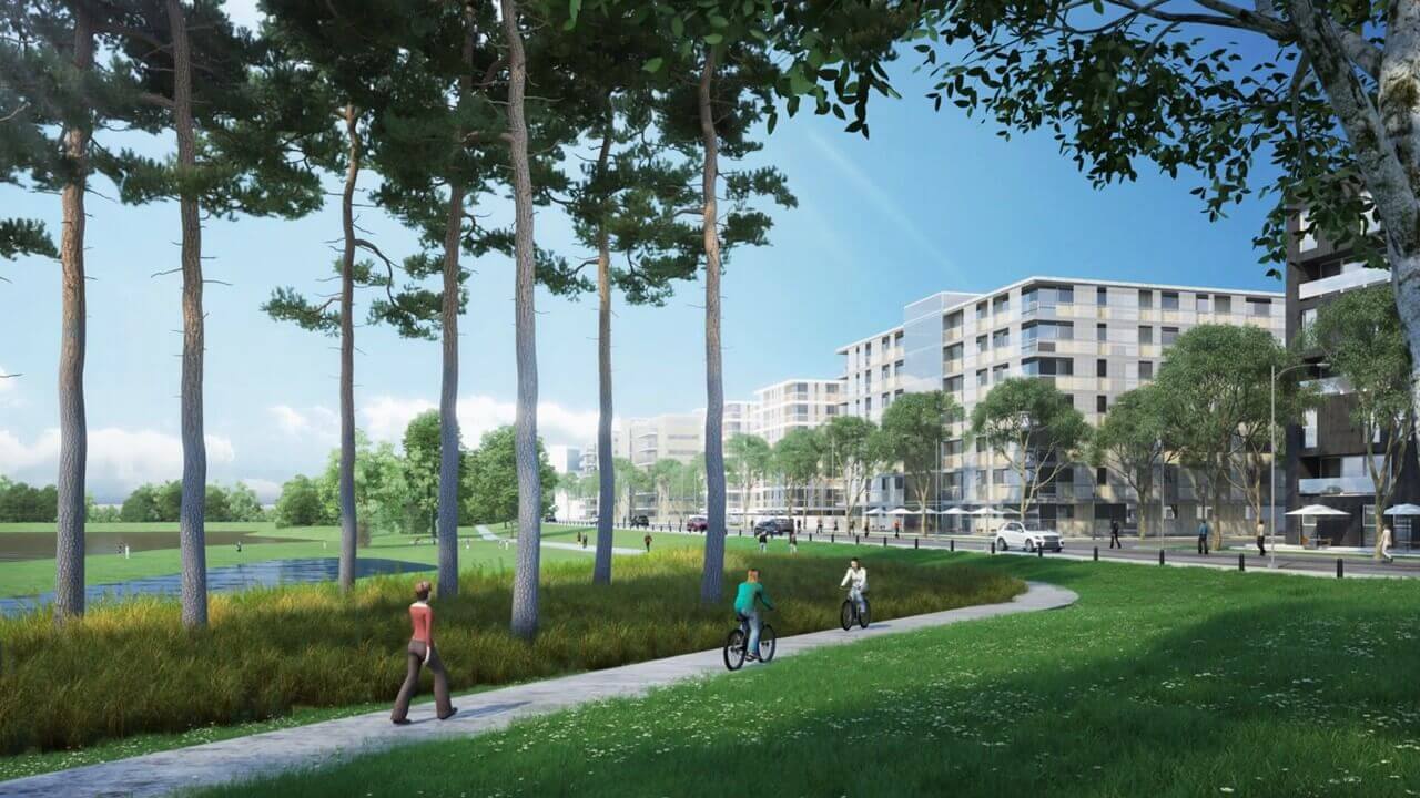 El proyecto, en ejecución, propone la posibilidad de movilidad y ordenación de un corredor central desde la autopista al sistema ferroviario interior, programando un barrio abierto de usos mixtos, con extensas superficies de parques públicos.