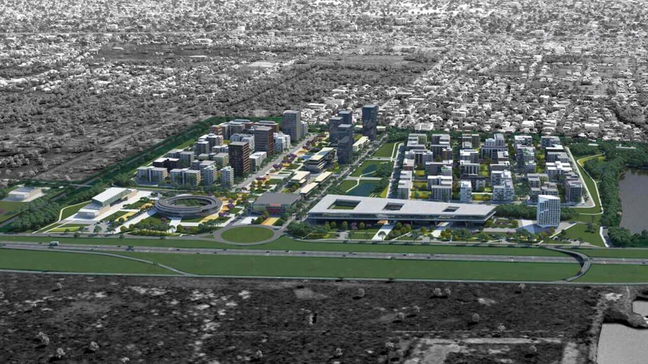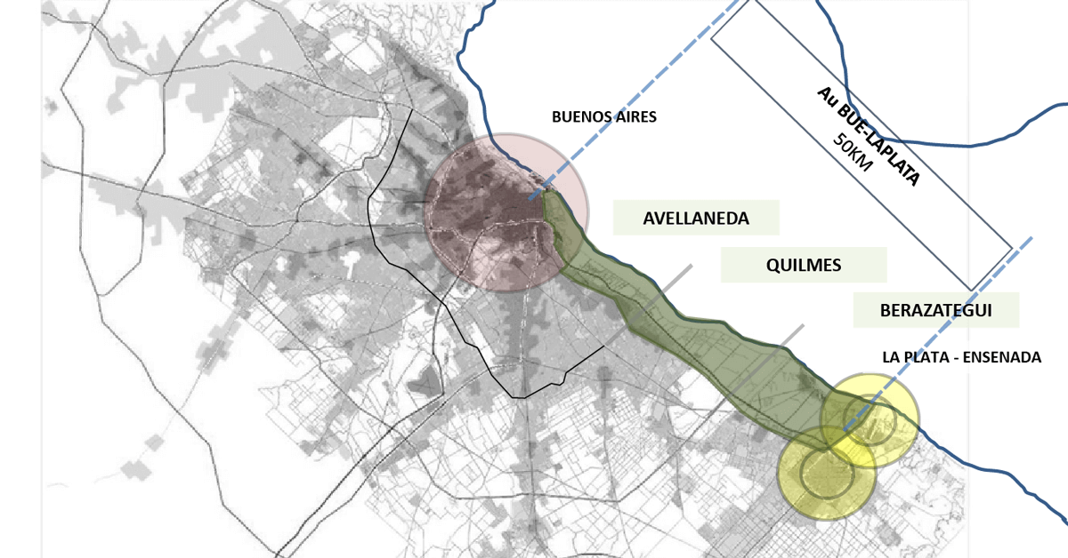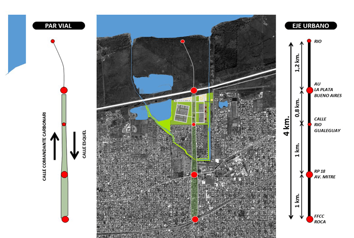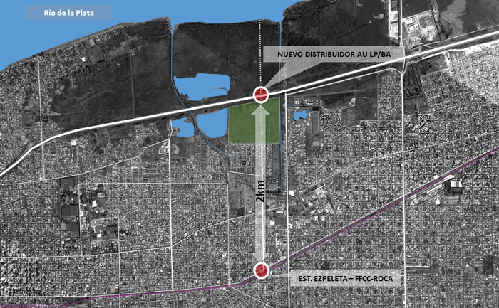 Creación de un nuevo Centro Residencial y Comercial, integrando al tejido consolidado de la ciudad, en un predio de 50 hectáreas, a borde de la Autopista Buenos Aires – La Plata, a 20 km del centro de la Ciudad de Buenos Aires.