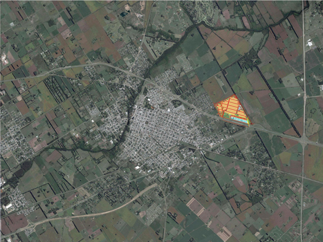 Propuesta de urbanización de un sector de la ciudad de Luján, generando una nueva zona residencial y un área comercial que se integra a la trama de la ciudad como interfase con el sector rural.