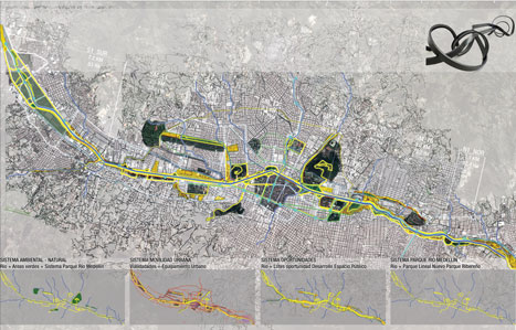 Competición internacional para la creación de un nuevo parque a ambas márgenes del río Medellín generando nuevos centros, que permitirán recuperar el espacio público del río y las áreas degradadas en múltiples tramos de la ciudad.