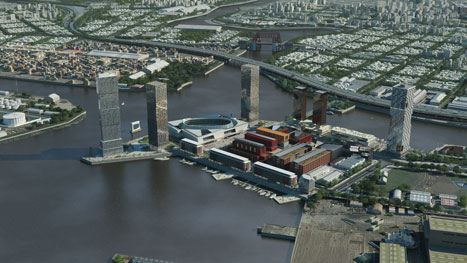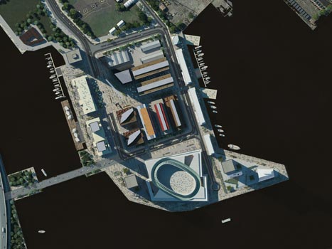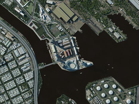 Concurso de propuesta urbana y gestión financiera. La propuesta define una innovadora unidad dentro del área sur de la ciudad de Buenos Aires, integrando a ella la potencia, la imaginación, el trabajo y la historia de la industria cultural audiovisual, a partir de la resignificación de la arquitectura y el paisaje portuario preexistente y la construcción de una moderna plataforma tecnológica, abierta a la producción comercial y la experimental de cine y animación, a través de instalaciones especializadas en net art, zonas de conocimiento, archivos digitales, estudios y oficinas de producción y salas de filmación y grabación.