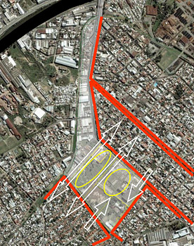Propuesta de una nueva centralidad urbana, generando un Plan para el reordenamiento integral del área, la definición de los programas de usos y el diseño integral de los procesos de gestión, generando un área de usos mixtos sobre una superficie de 24 hectáreas de extensión creando las condiciones estratégicas que permitan la transformación integral en las cercanías del Riachuelo y el Puente Alsina, uno de los principales vínculos metropolitanos de Buenos Aires.