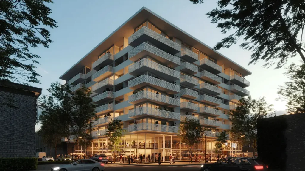 Proyecto de arquitectura de un edificio con usos residenciales de diversas tipologías, espacios de amenidades y basamento comercial, en el Municipio de San Martín, Provincia de Buenos Aires.